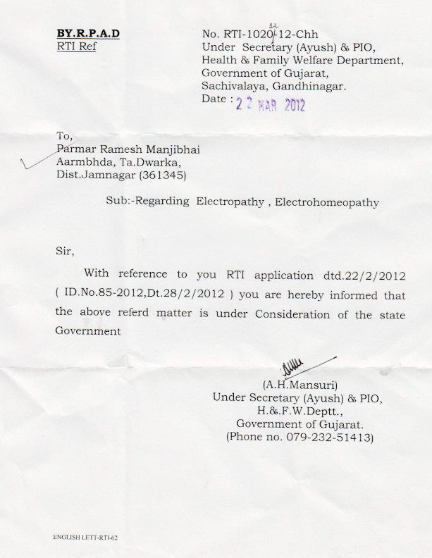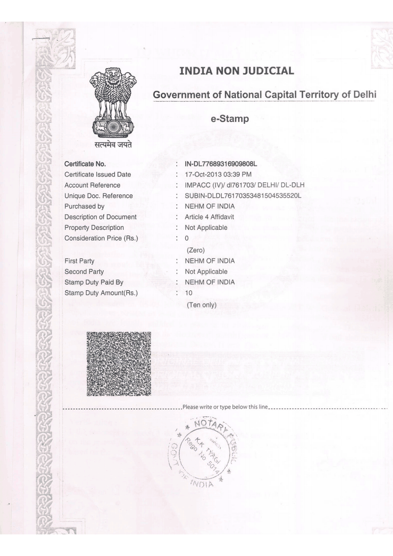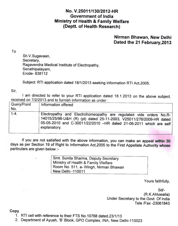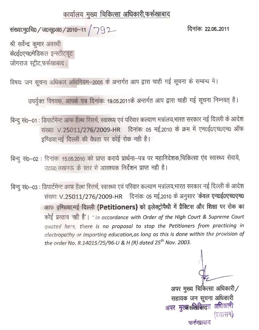 - Haryana Govt Electropathy NOC letter