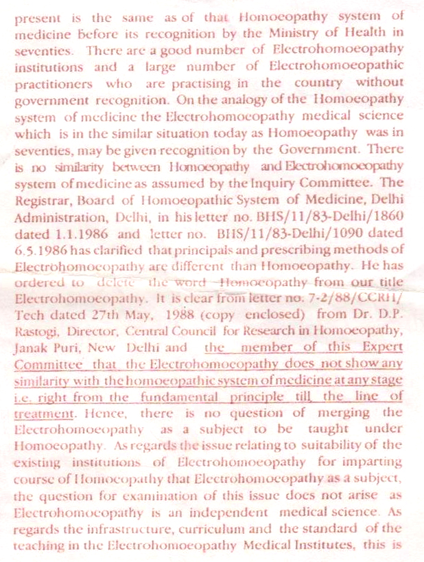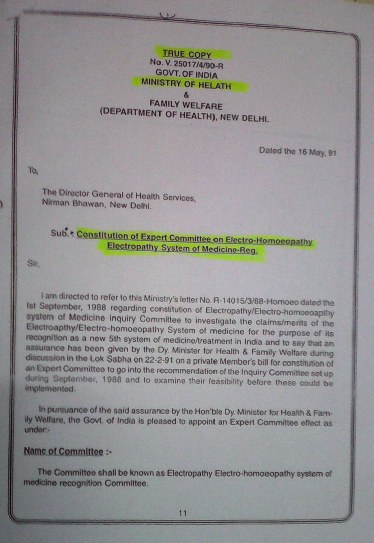 - Constitution of expert committee on electrohomeopathy