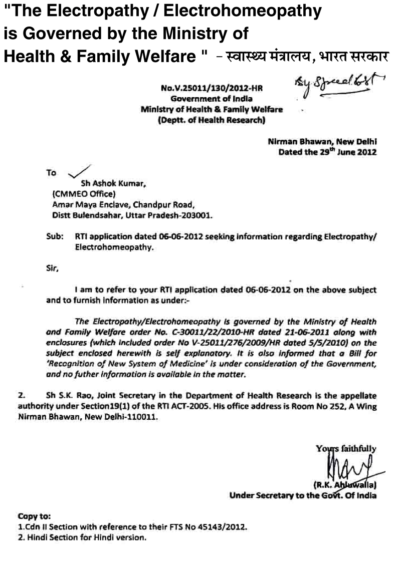 - Electropathy governed by ministry of health and family welfare