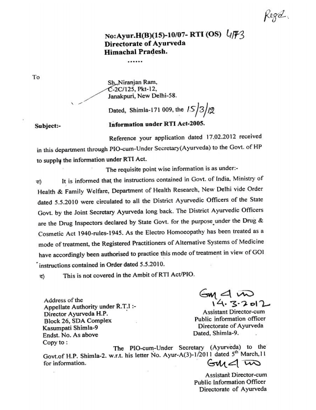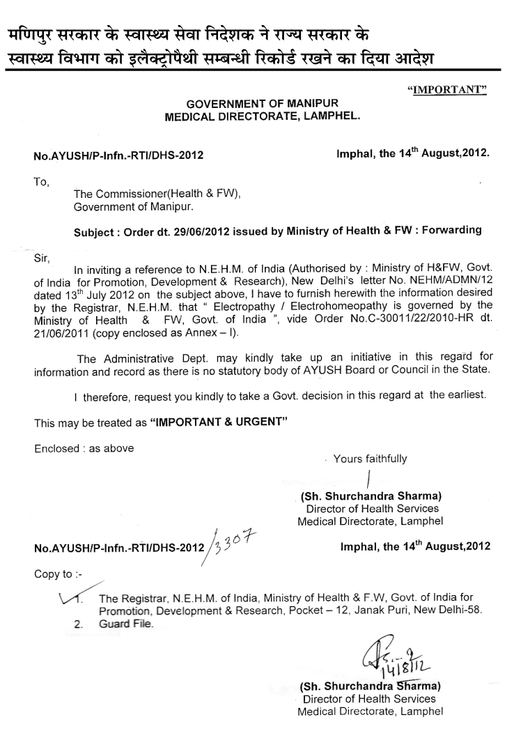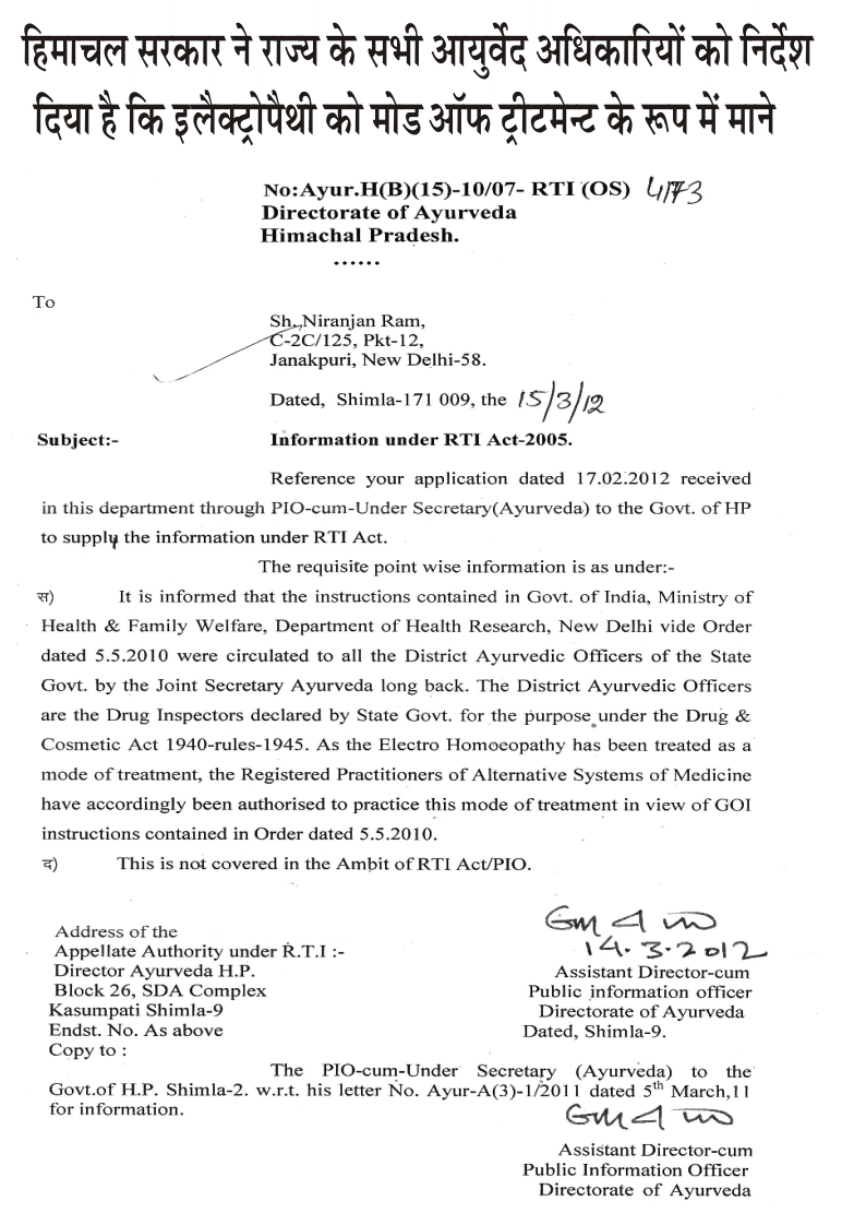 - Himachal Govt Electropathy NOC letter