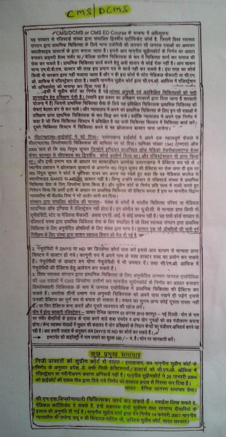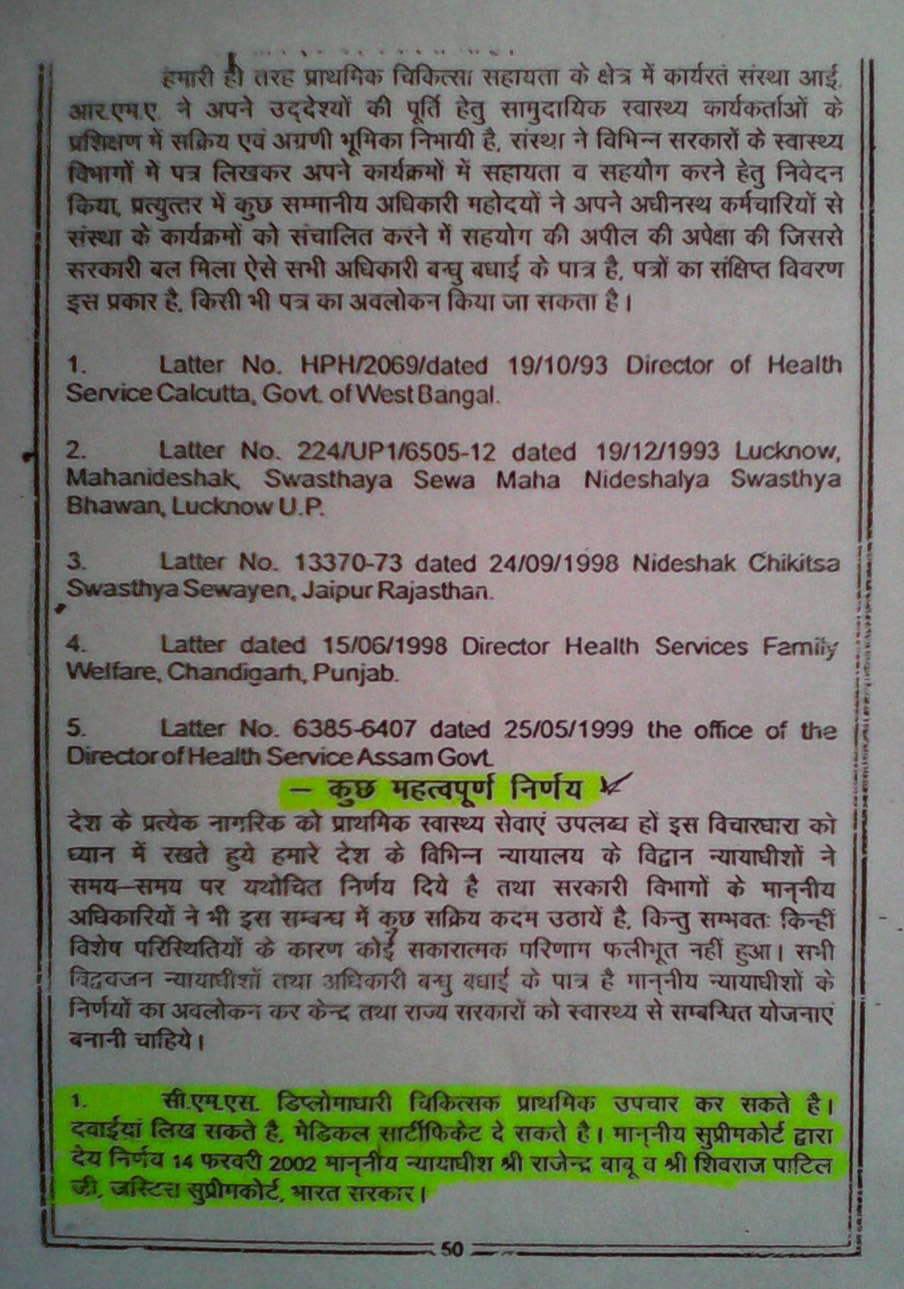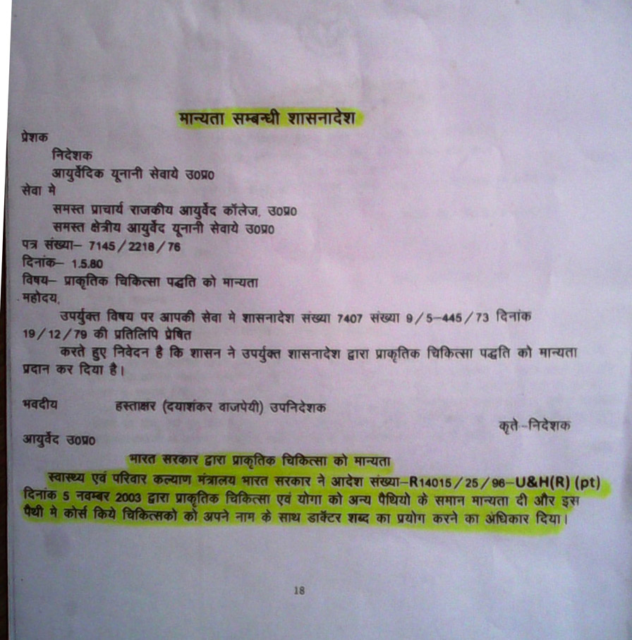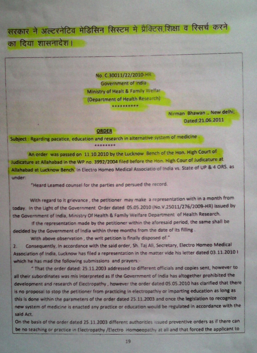 - The Hon’ble supreme court of Delhi, stated in its final judgement of a case on alternative system of Medicine that “the Judegement of Hon’ble High court of Delhi must be strictly followed by the Govt. of India within Eight weeks” to regularise and recognise the alternative system of medicines.